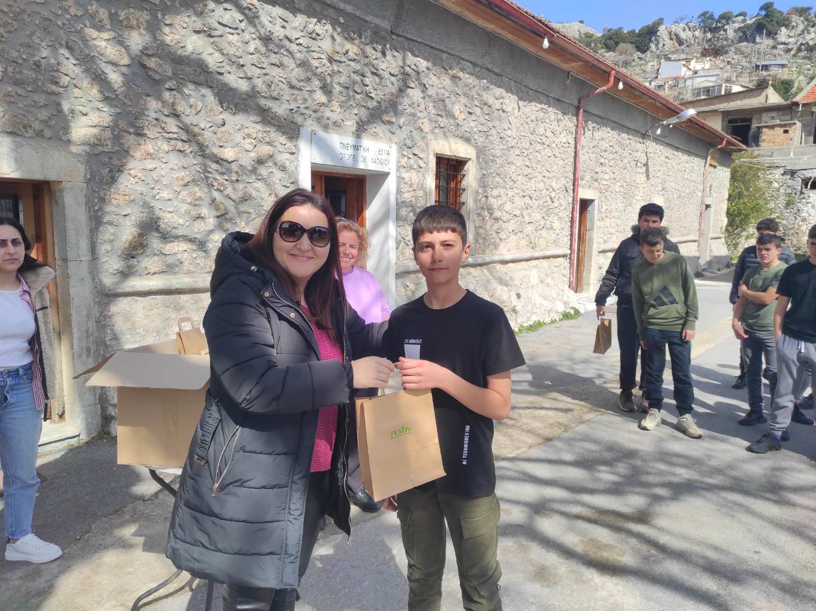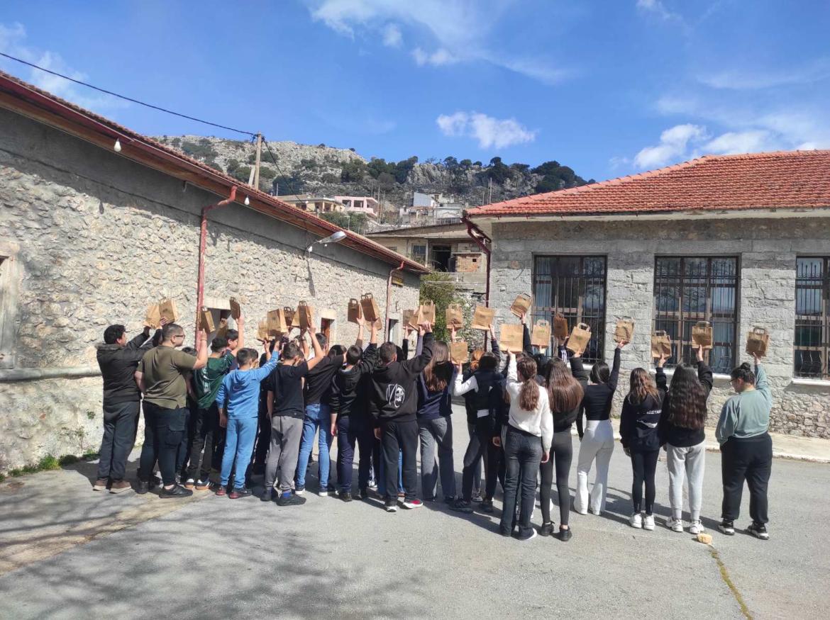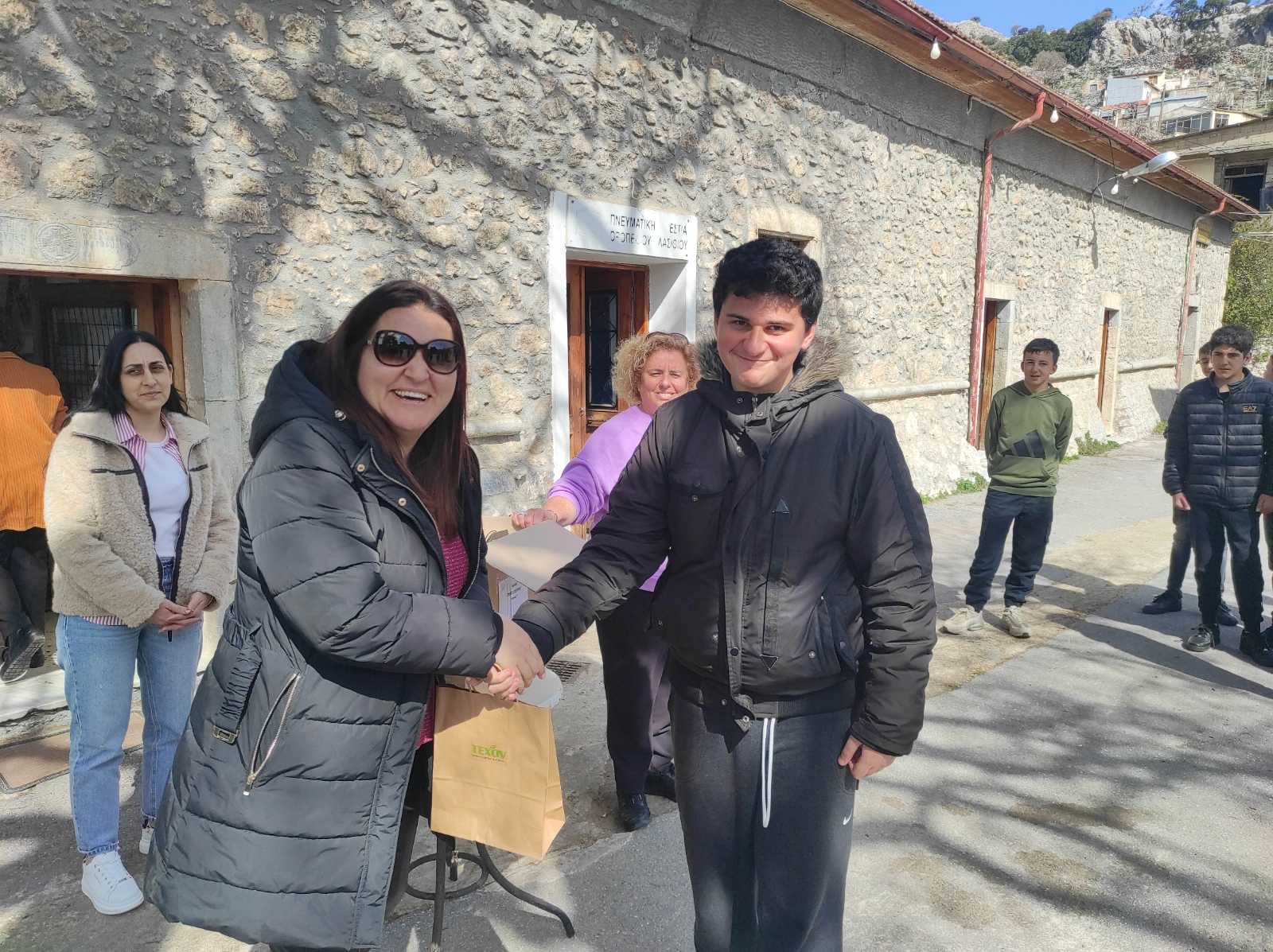 Απονομή των δώρων στο Τμήμα Γ του Γυμνασίου Τζερμιάδου, που πρώτευσε στον Δήμο Οροπεδίου Λασιθίου με συνολικό αριθμό 71.999 υλικών.