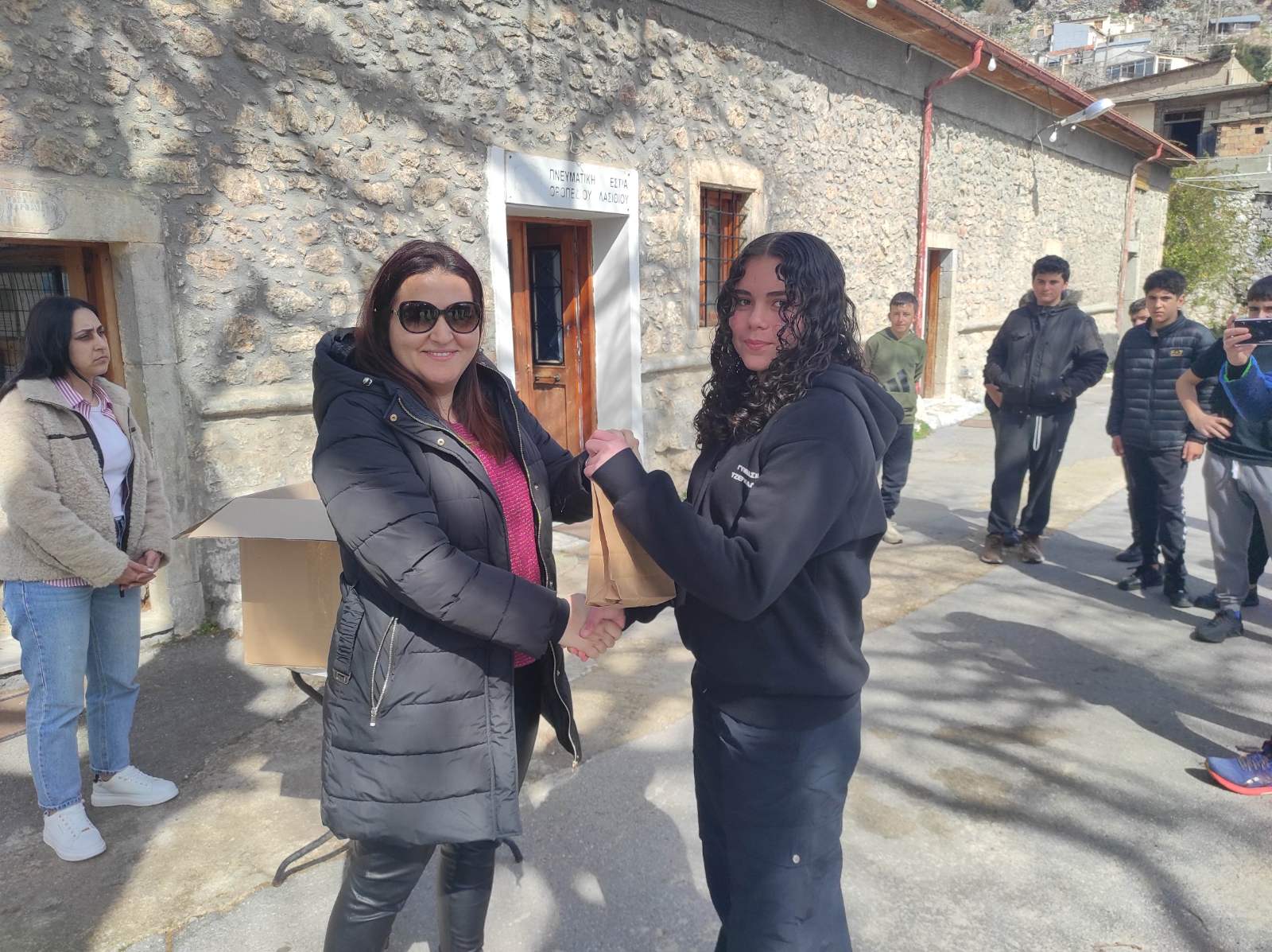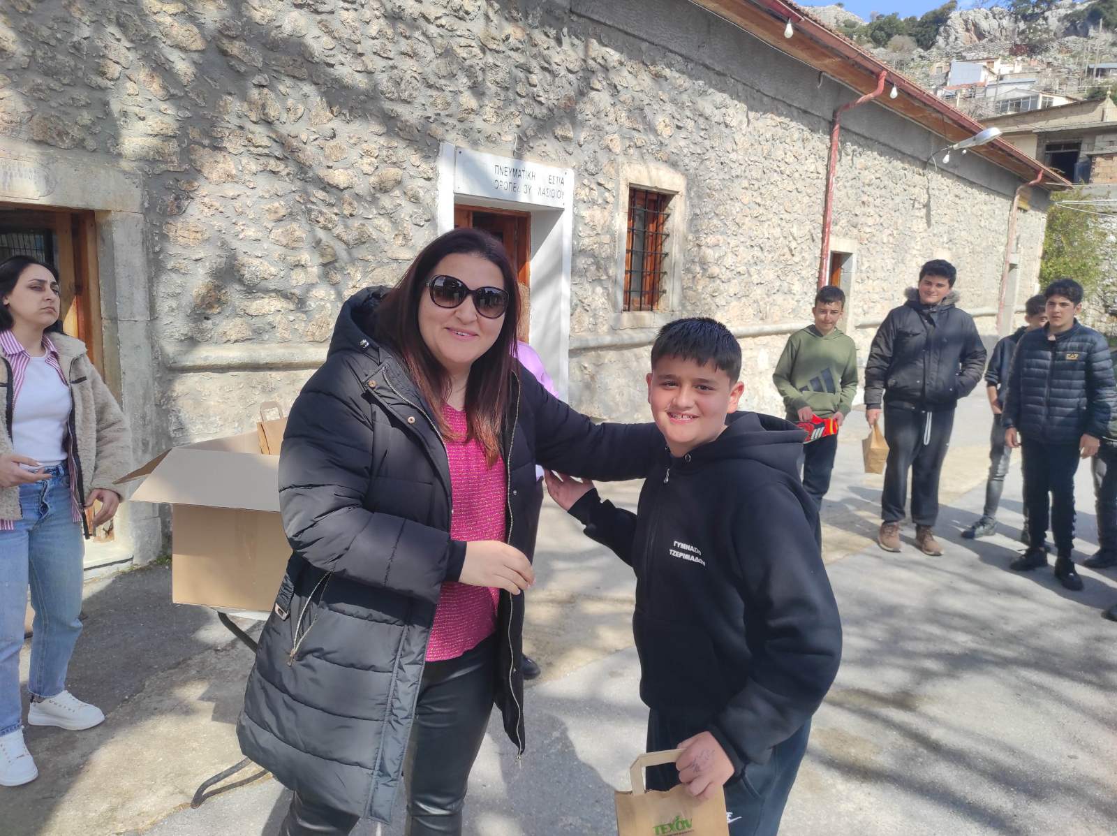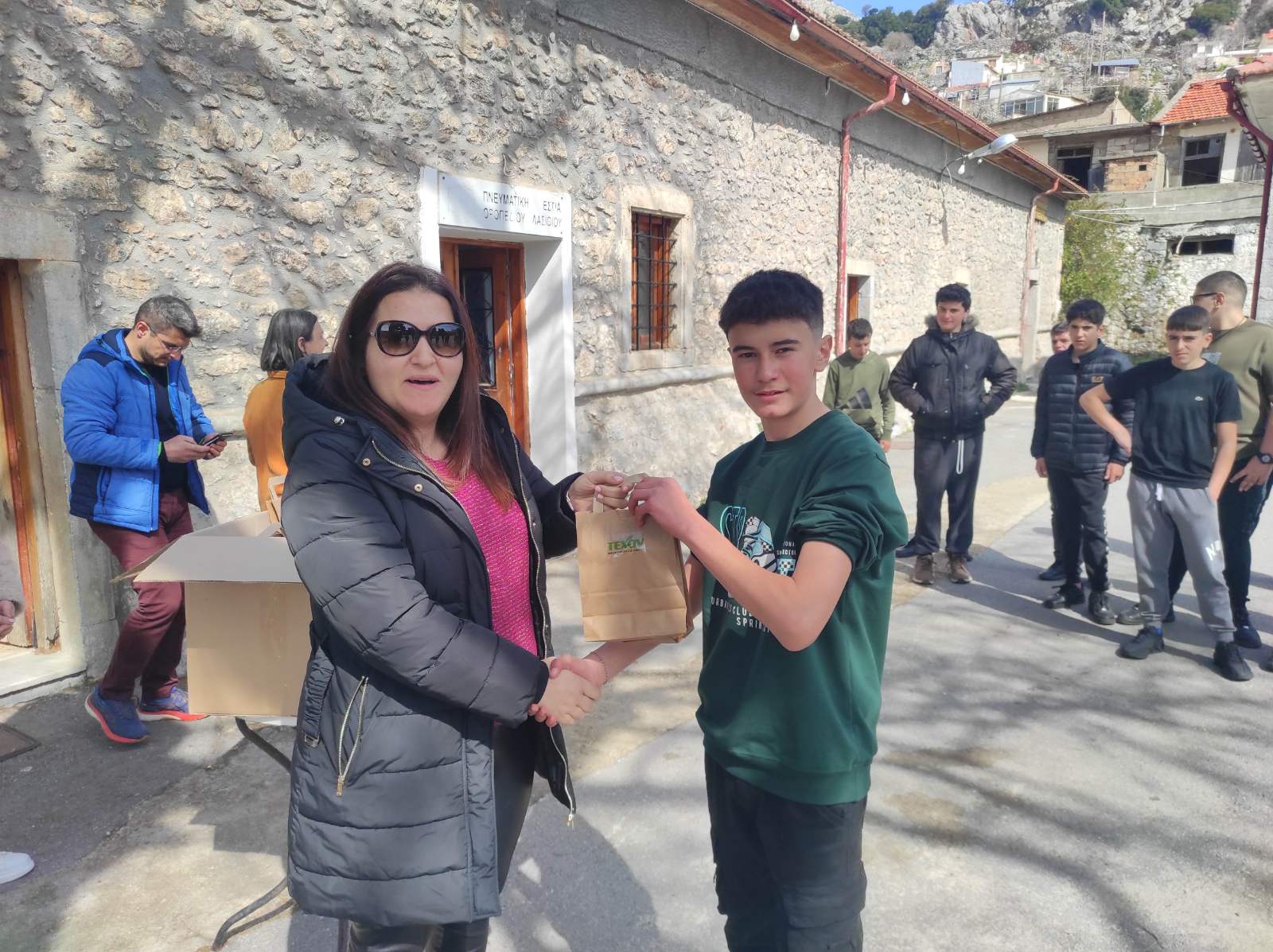Απονομή των δώρων στο Τμήμα Γ του Γυμνασίου Τζερμιάδου, που πρώτευσε στον Δήμο Οροπεδίου Λασιθίου με συνολικό αριθμό 71.999 υλικών.