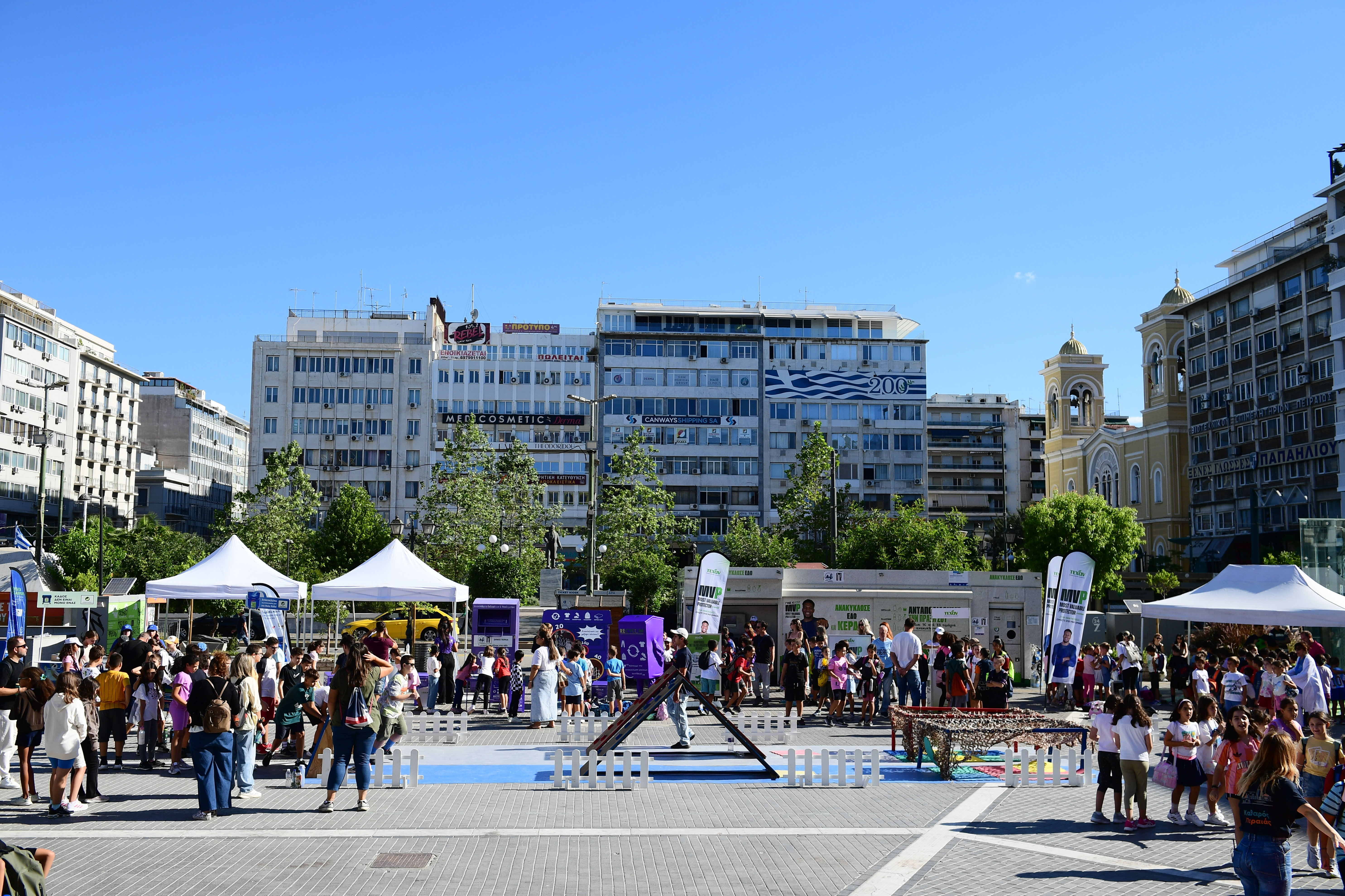 Η πλατεία μετατράπηκε σε ένα πολύχρωμο «Χωριό Ανακύκλωσης», γεμάτο χαμόγελα, δημιουργικότητα & παιδικές φωνές. Πλήθος παιδιών, γονέων & εκπαιδευτικών συμμετείχαν σε δράσεις που στόχο είχαν να κάνουν την ανακύκλωση… παιχνίδι!