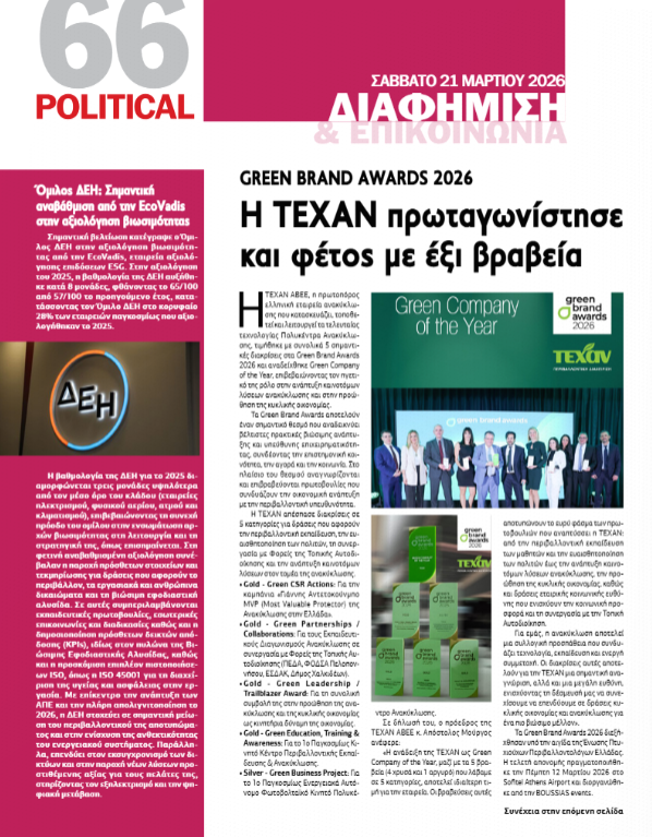 Αφιέρωμα στην @political.gr σχετικά με τις δράσεις Εταιρικής Κοινωνικής Ευθύνης της ΤΕΧΑΝ.