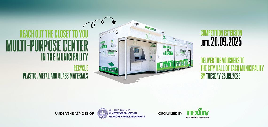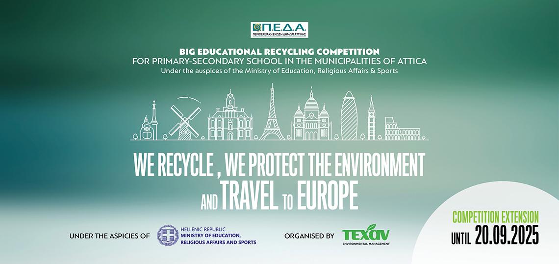 Due to the extremely large participation and after many requests from schools of the Region, we inform you that the “Major Educational Recycling Competition of Primary and Secondary Education Schools of the Municipalities of the region  of Attica” organized in the framework of the social and environmental awareness programs by TEXAN, in cooperation with the Regional Association of Attica Municipalities is extended.