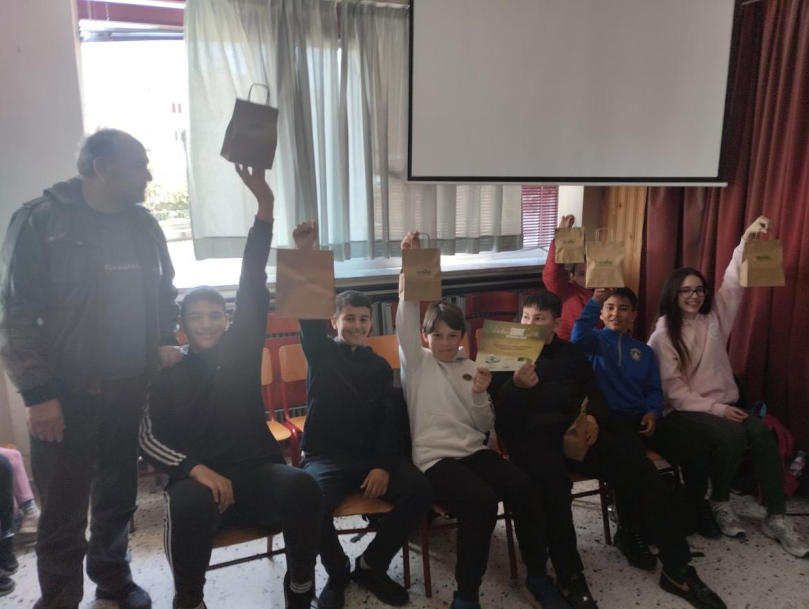 Απονομή των δώρων στο Τμήμα Α του 4ου, 1ου, ΜΟΥΣΙΚΟΥ ΓΥΜΝΑΣΙΟΥ, που πρώτευσε στον Δήμο Τρίπολης με συνολικό αριθμό 480.393 υλικών.